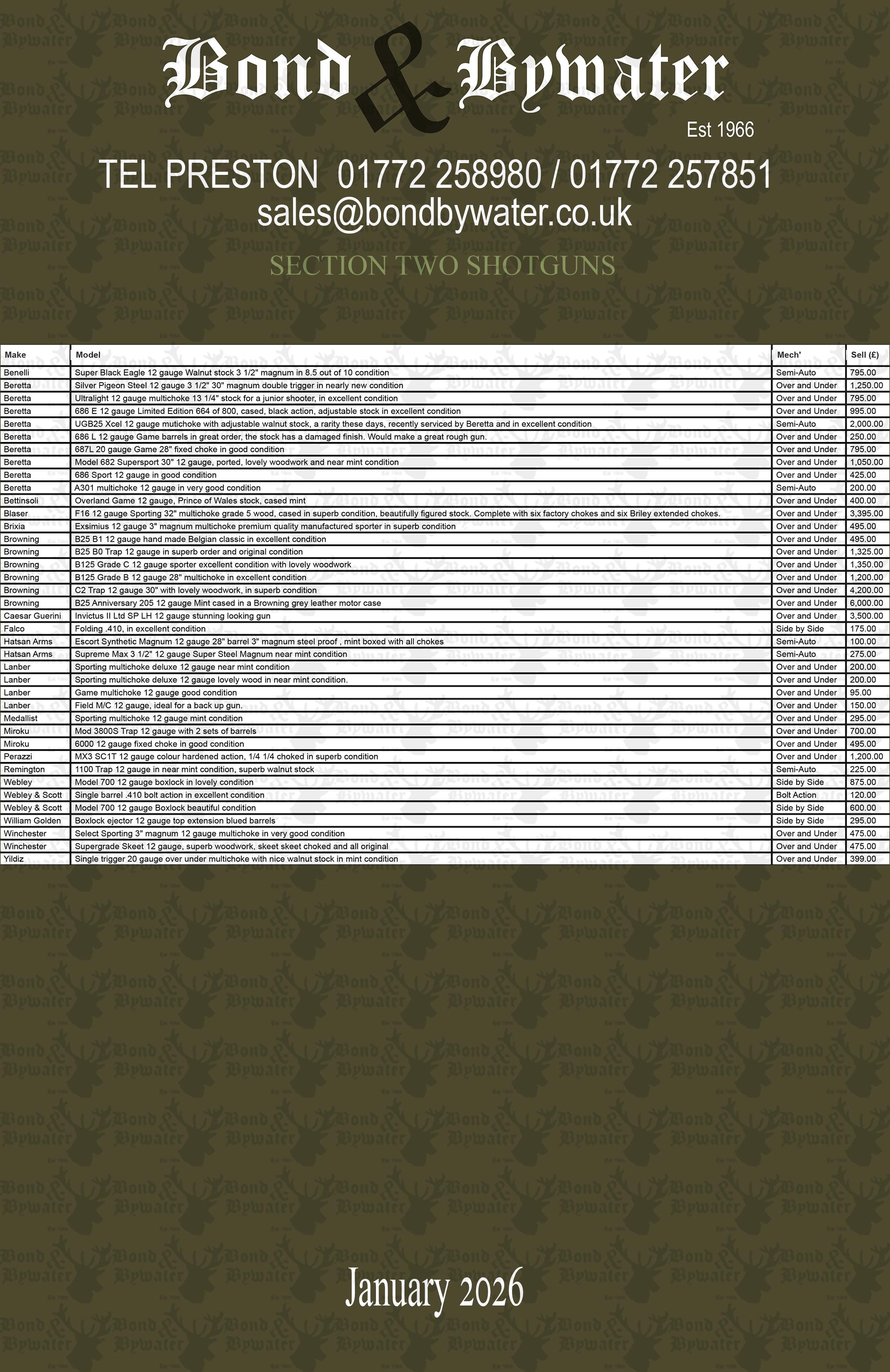 Here is our Second hand shotguns price list for downloading.