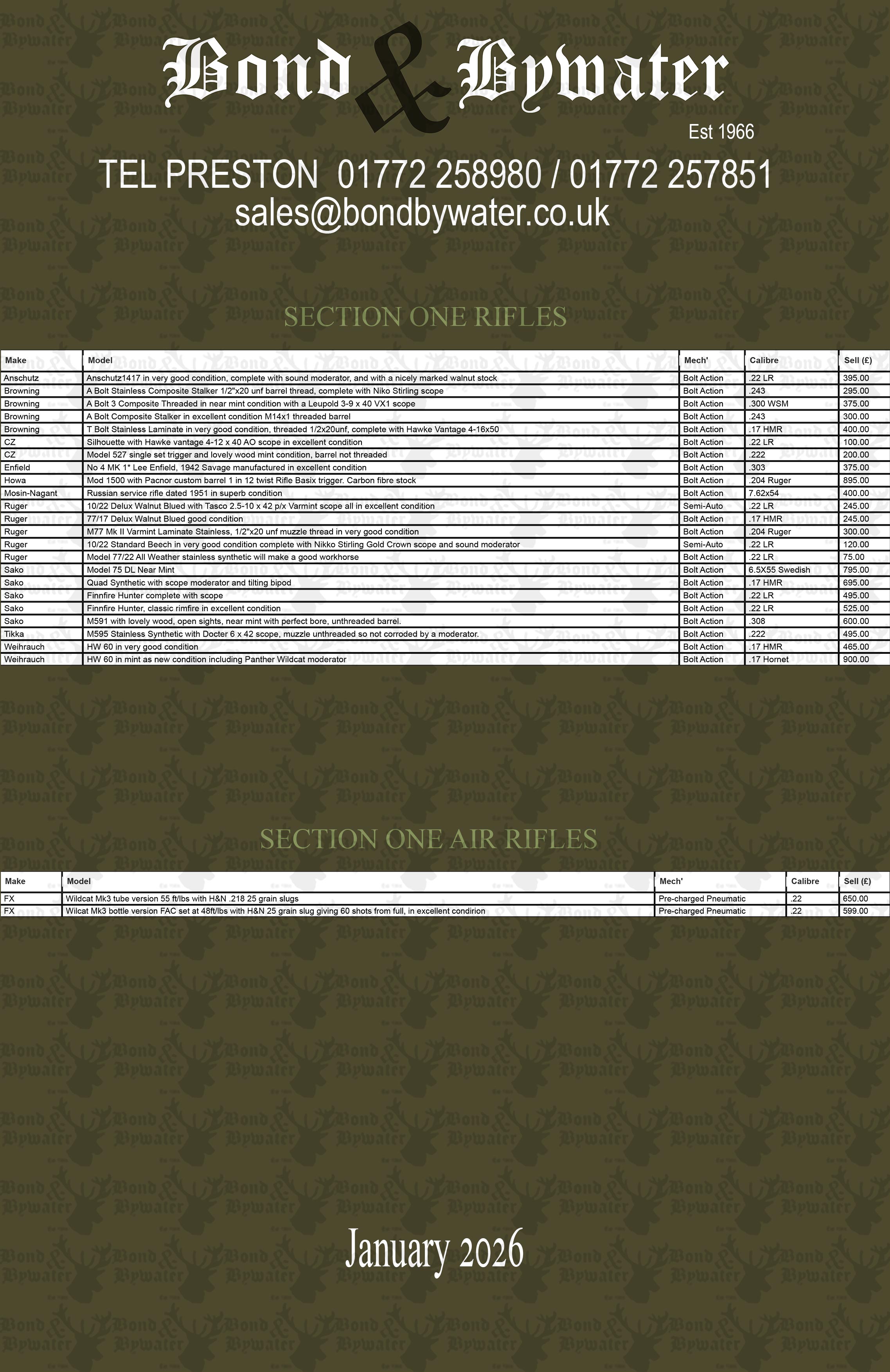 Here is our Second hand Section one rifle price list for downloading.
